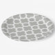 Beige Grey White Retro Ikat Quatrefoil Pattern Paper Plate
