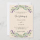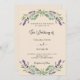 A beige coloured background decorated with lavender flowers and eucalyptus greenery. Personalize and your names and details.