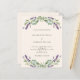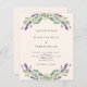 A beige coloured background decorated with purple lavender flowers and eucalyptus greenery. Personalize and your names and details.
