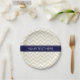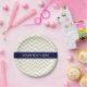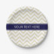 Beige Lg Chevron Navy Blue Name Monogram Paper Plate