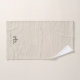 Simple elegant bath towel featuring a beige linen creme texture and personalized monogram design, perfect for adding a chic luxury touch to your bathroom decor. This customizable towel makes a thoughtful gift for weddings, housewarmings, or everyday use, with a timeless neutral aesthetic that complements any style.