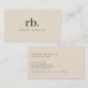 Beige Linen Minimal Monogram Clean Professional Business Card