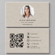 Beige Linen Photo with QR Code Social Media Business Card