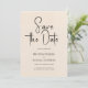 Whimsical minimalistic modern, customizable black script typography, elegant save-the-date invitation. The light beige colour printed linen texture background adds a touch of organic feel of classic elegance. Other colours are available.