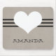 Sweet and charming Modern Heart Mousepad featuring a beige background and a cute heart and striped border. This cute and girly mousepad will add style to any workspace. Customize with the text of your choosing. Click on "Customize" to find additional personalization options.