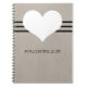 Sweet and charming Modern Heart Notebook featuring a beige background and a cute heart and striped border. This cute and girly notebook will allow you to keep notes and reminders handy with style. Customize with the text of your choosing. Click on "Customize" to find additional personalization options.