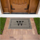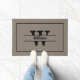 Personalized beige and black family name doormat with last name monogram. A classic look for any home. Makes a great housewarming gift.