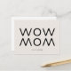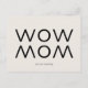 This Mother's Day postcard presents a strikingly minimalist design with a playful twist on words. The bold, black typography spells out "WOW MOM," with the 'M' and 'W' mirroring each other, creating an eye-catching visual palindrome. This clever design captures the surprise and admiration that the phrase 'wow' conveys, doubling as a reflection of the word 'mom' to celebrate the wonder that mothers inspire.