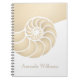 A custom nautical notebook design featuring a beige nautilus shell and personalized name. Replace the sample name shown in the design template with your desired name or other text.
