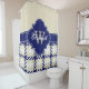 Navy Blue White LG Houndstooth Pattern with Colour Block, Initial + Name Monogram on a Navy Blue Quatrefoil with Ribbon
