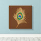 Beige Peacock Feather on Chocolate Brown Canvas Print