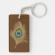 Beige Peacock Feathers on Chocolate Brown Keychain