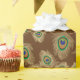 Beige Peacock Feathers on Chocolate Brown Wrapping Paper