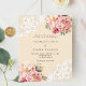 Beige pink rose floral lace wedding invitation