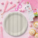 Elegant beige paper plates featuring a soft, textile-inspired stripe pattern with clean vertical lines. Designed for elevated entertaining, these plates offer a refined, minimalist look that pairs beautifully with both modern and classic table decor.
