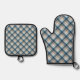 Beige Tan Brown Dark Blue Plaid Gingham Pattern Oven Mitt & Pot Holder Set
