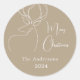 Beige white abstract reindeer modern Christmas Classic Round Sticker