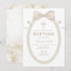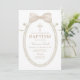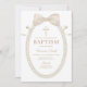 Elegant Beige White BOW Pearls Girl Baptism Christening Invitation