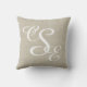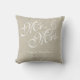 Personnalisé Beige et blanc M. et Mme Mariage Coussin avec trois lettres monogramme sur le dos. Conception par Elke Clarke©. Disponible à l'adresse www.zazzle.com/monogramgallery. arrière - plan en lin beige, classique, personnalisé (effet photo imprimé), personnalisable avec les noms de mariées et de mariées en caractères de caractères en caractères blancs et date mariage. Le design magnifique est parfait pour les cadeaux de mariage, les coussins amoureux, les cadeaux d'anniversaire mariage et plus encore. Utilisez le menu Modifier pour changer les couleurs ou visitez notre magasin pour plus de dessins et d'options de couleurs.