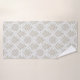 Elevate your bathroom decor with our Glam Beige & White Quatrefoil bath towels, featuring a sparkling pattern that adds a touch of sophistication.