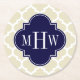 Beige Wht Moroccan #5 Navy Blue 3 Initial Monogram Round Paper Coaster
