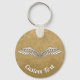 Wide open beige wings illustration. Grunge beige background. Custom text on both sides.