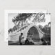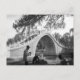 Beijing summer palace bridge vintage black and white postcard Souvenir for friends or to keep as memories for yourself! Add something new to your personal postcard travel collection to remember your Beijing trip! Postcard shows a beautiful bridge over a river with some Beijing locals sitting around chatting. The edge of the postcard has a beautiful tree hanging over with other trees in the background