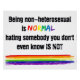 Pride / LGBTQ+ / Rainbow colours Slogan: Being non-hetero is normal, hating somebody you dont' even know IS NOT Poster / Banner