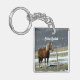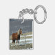Belgian Draught Horse In Paddock, Keychain. Digital Art. Single Belgian horse in winter paddock behind barbed wire fence. Fits well in farm or ranch decor. Customizable. Edit the name to your needs, or remove it entirely.