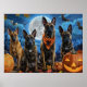 Unleash the spooky spirit with this eerie Halloween design featuring a pack of dogs under a dark, moonlit sky, surrounded by flying bats and glowing pumpkins. Perfect for those who love a touch of frightful fun with their furry friends!