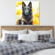 A Belgian Tervuren dog looks great against a field of yellow poppies on this gorgeous canvas art which will brighten up any room while showing your love of the tervs.