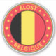 Badge of Aalst sticker with flag of Belgium colours, rounded shape.