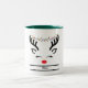 Believe modern funny Christmas reindeer white Two-Tone Coffee Mug . A funny and cute modern abstract image of a reindeer head with Christmas lights. With Christmas lights hanging from the antlers. White background. Personalize by adding your Christmas Message.