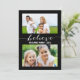 Your holiday greetings to friends and family will be unique using this elegant, simple holiday photo card design with the word "Believe" written in a popular, white script font on a black background with place holders for two family photos in a vertical card layout. Design by ELKE CLARKE© FOR MONOGRAM GALLERY. Replace sample photos with your own. Black and white striped pattern on the back of card can be changed or deleted. Other colours available in store or contact designer.