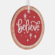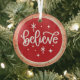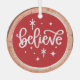 Bring a touch of holiday magic to your tree with this ornament featuring white typography that reads Believe against a festive red background, accented with twinkling stars. Designed with a rustic keepsake feel and faux wood-slice edging, it’s a timeless addition to farmhouse, modern, or Christmas tree décor. A meaningful gift or decoration that inspires the wonder of the season.