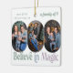 Believe in Magic photo ornament for new parents first Christmas as a family of 3 - or you can edit the wording to say whatever you want. The design features 6 photos and you can also change the colour of the text and background. Your photos are displayed in 16:9 portrait format and the photo template will automatically display them in a pill-shaped, rounded lozenge shape. Please browse my Rounded Lozenge Photo Collage collection for more designs and gift ideas.