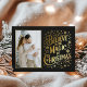 Capture the wonder of the season with this incredibly striking, luxury holiday card featuring a dramatic black background. The heartfelt message, "Believe in the Magic of Christmas," is rendered in beautiful, ornate script and surrounded by sparkling stars, all shining brightly in premium gold foil. Your family photo is elegantly framed next to the text, making this eye-catching design a truly sophisticated and magical way to send your greetings.