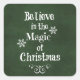 Believe in the magic of Christmas Quote Canvas Prints with vintage green chalkboard background, bokeh sparkle edges, snowflakes and white font.