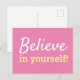 Believe in Yourself Pink White Quote Postcard