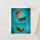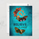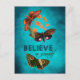 An inspirational and motivational message, "Believe In Yourself", over beautiful vibrant teal background with butterflies and flowers.