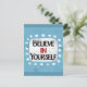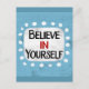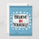 "Believe In Yourself" is a cute inspirational or motivational quote with a white accent shape surrounded by white textured whimsical dots.