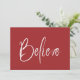 Carte saisonnière «Croyez» de Noël rouge moderne, ce qui en fait l'ajout parfait à toutes vos cartes de vœux de vacances. Croyez en la saison et en toute sa beauté avec votre nom personnalisé au verso de cette charmante carte. Satisfaction client 100% avec “Zazzle” tous les jours !