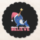 Believe Narwhal Christmas Snow Fairy Lights Paper Coaster