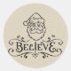 BELIEVE Rustic SANTA Christmas Holiday Favour Trea Classic Round Sticker