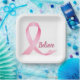 Believe Text Pink Ribbon Breast Cancer Awareness Paper Plate