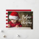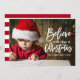 A perfect choice for your Christmas holiday greetings to your friends and family, a beautifully, simple holiday photo card design with the words "Believe in the Magic of Christmas" written in a trendy white script hand lettered font overlay. Design by ELKE CLARKE© Available exclusively at www.zazzle.com/monogramgallery*. Replace sample photo with your own. Red and white striped background on back of card. Other colours available in store.