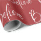 Believe Typography Red Modern Holiday Wrapping Paper