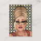 This fun business card design features a female portrait of a very sassy girl wearing cats eye glasses and sporting a glamourous beehive hairstyle which seems to be attracting a lot of attention! The little buzzing bees and vintage spotted backdrop add the finishing touches to this pop art style design. A great card for those into hair and beauty, retro fashion styles or just love the humour.
