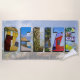 Have some fun at the beach and show off your love for the country of Belize with this beach towel containing travel photos of Ambergris Caye, Caye Caulker, and Mayan ruins. A gorgeous colour collage is imposed over a tropical resort beach scene with palm trees, and the tranquil blue ocean water background will hopefully make you feel relaxed every time you look at it!