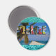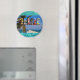 Show everyone your love for the country of Belize with this bright, fun magnet containing photos of Ambergris Caye, Caye Caulker, and Mayan ruins. A gorgeous color collage is imposed over an out-of-focus tropical beach scene with a palm tree and dock. The background contains an image of a beautiful blue ocean.